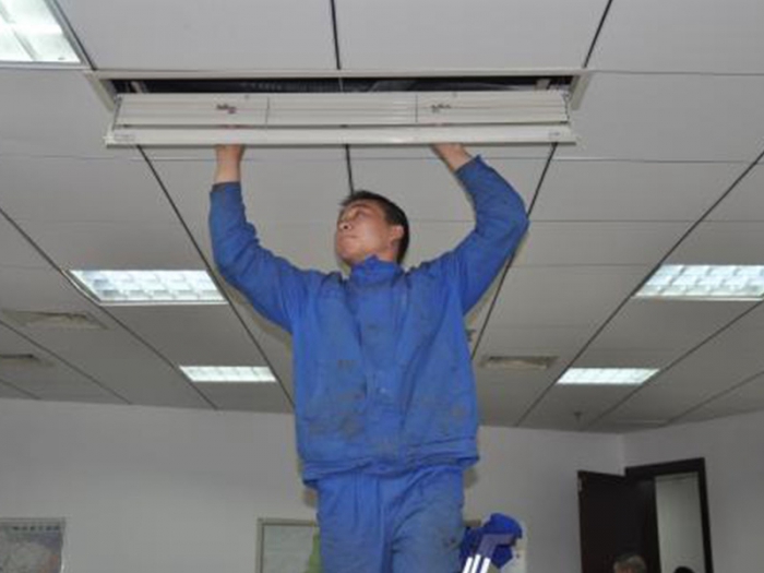 风机噪音高于额定值,请测定风机噪音,检查风机叶轮是否碰壳,轴承是否破坏,减震是否良好,对症处理。济南商河中央空调维修空调器在运行中,正常情况下振动轻微、噪声较小,一般在50DB以下。如果振动和噪声过大,可能原因有:泡沫塑料垫等,均可使空调器在运转时振动加剧、噪声变大。尤其在刚启动和停机时表现得最为显著。底盘相碰,风扇的轴心窜动,叶片失去平衡也会发出撞击声;如果风扇内有异物,叶片与之相碰也会发生撞击声。风管及阀门、风口风速过大,产气愤流噪声,请调节各种阀门、风口,降落过高风速。空调维修体系消声设备不完美,请增加消声弯头等设备。室内气流速度散布不均有逝世角产生起因及解决方法。气流组织设计考虑不周,应依据实测气流散布图,调剂送风口位置或增加送风口数量。送风口风量未调节均匀,不合乎设计值,应调节各送风口风量使与设计请求相符。统实测风量小于设计风量产生起因及解决方法。体系的实际阻力大于设计阻力,风机风量减小,前提许可时,改进风管构件,减少体系阻力体系有阻塞景象,请检查清理体系中可能的阻塞物。体系漏风,应堵漏。
